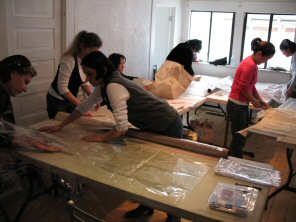 Gregory and "Katy" starting the project, removing the cambric dust cover |