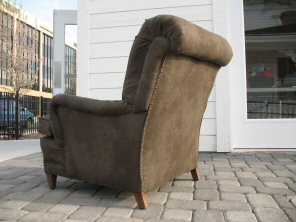 Finished wingback chair with Faux Leather and Western Tapestry panel on front back |