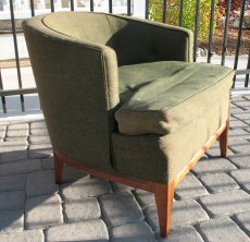 Finished chair with Chenille fabric and buttons with contrasting black fabric |